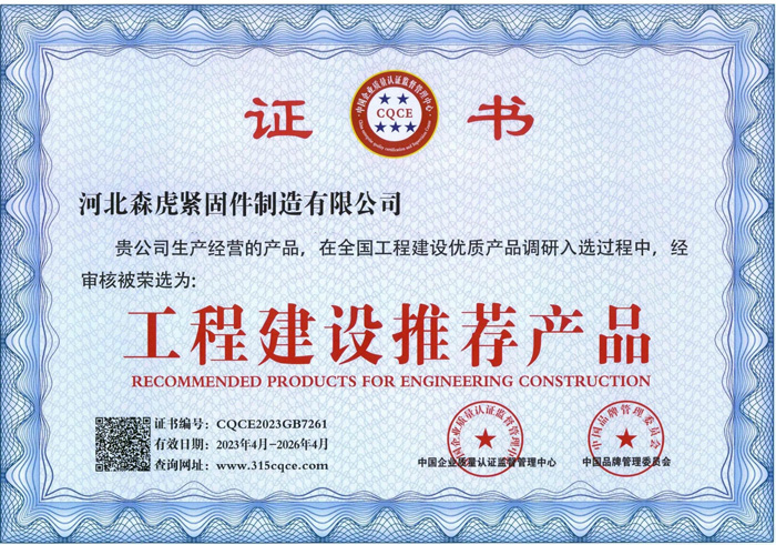 河北森虎緊固件制造有限公司成立于2011年,是建廠較早的緊固件企業。西臨京廣線,東臨京深高速,地理位置優越,交通便利。 主要生產:化學錨栓、機械錨栓、定型化學錨栓、高強度8.8級化學錨栓、自切底機械錨栓、車修壁虎,膨脹螺栓,植筋膠。 質量方針:先進技術、科學管理、優良品質、用戶滿意; ...